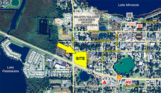 5.94± acres available in Clermont, Florida. The property is located at the signalized intersection of Florida Highway 50 and 12th Street. Parcel A offers 2.52± buildable acres, while Parcel B offers 1.80± buildable acres. The property is zoned C-2 for commercial and is only 0.25 miles from a mixed-use redevelopment including 392 multi-family units. Permitted uses include commercial, office, retail and restaurants. State Highway 50 sees 39,500 AADT.